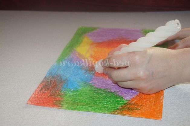 Потім малюнок натираємо свічкою без пропусків.