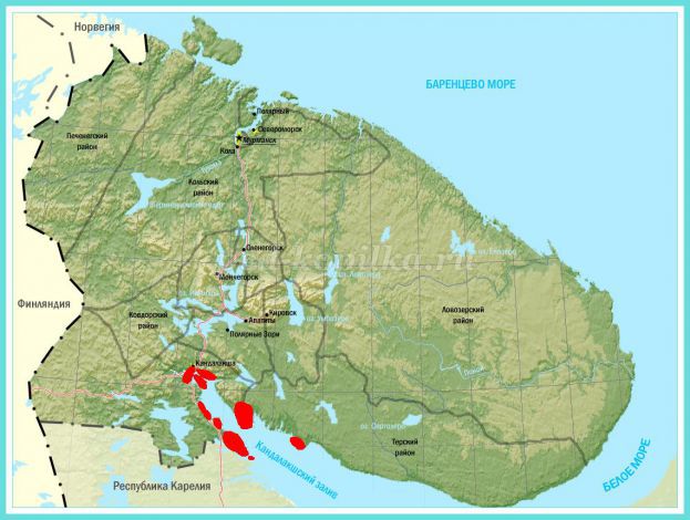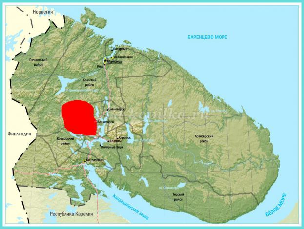 Користуючись картою Мурманської області, познач територію Кандалакшского заповідника.