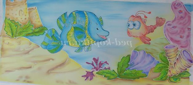 • Сюжет для картини я взяла з картинки, намальованої на упаковці олівців - «Підводне царство» зі смішними мешканцями.