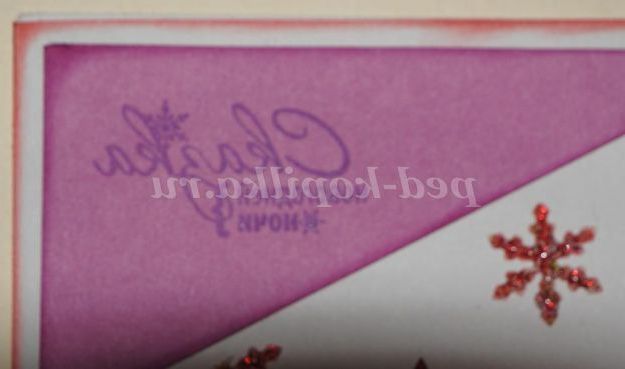 Підтінюємо краю листівки і трикутників штемпельною подушкою червоного відтінку.