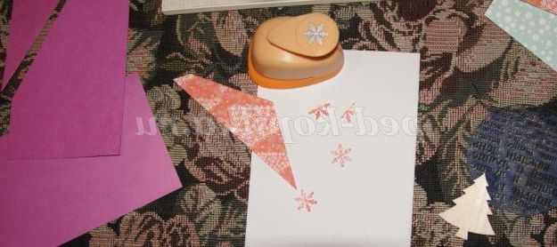 Вирізаємо фігурним дироколом сніжинки із залишків скрап паперу.