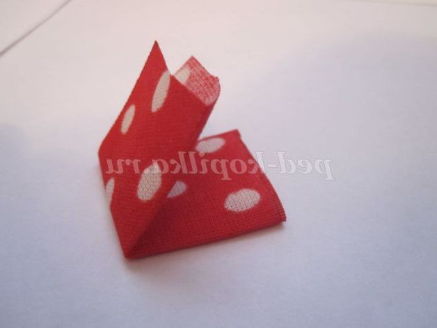ІІ етап. Клаптевий квадратик складаємо навпіл і протикаємо приблизно в серединку голочку (голочку пронизуємо з внутрішньої сторони на лицеву)
