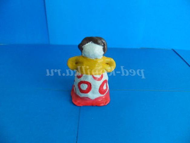 Коли тісто готове, можна приступати до виготовлення фігурки Дымковской панянки. Беремо, пластмасовий стаканчик, накладаємо на нього шматочок сплющенного тіста, розгладжуємо пальцем, щоб тісто лягло на весь стаканчик.