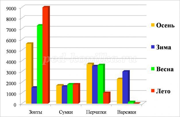У скільки разів рукавиці взимку продаються краще, ніж парасолі? (в 2 рази)