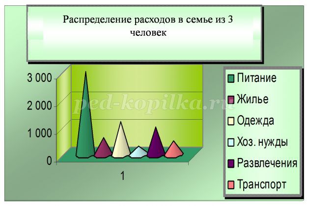 Розглянемо малюнок 10. У вигляді яких фігур представлені види витрат на даної діаграмі? (Конуси). Як може називатися така діаграма? (Конусна)