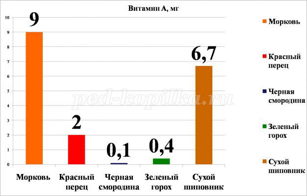 У скільки разів у моркві вітаміну А більше, ніж у червоному перці?