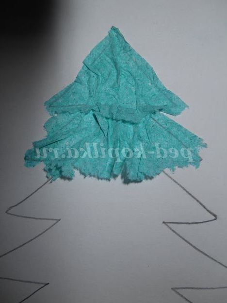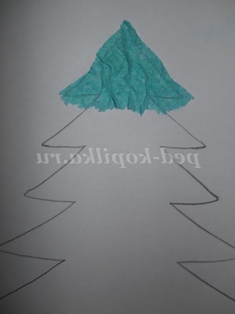 Рвемо серветку синього кольору на дрібні шматочки і приклеюємо.