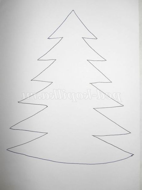 Аркуш білого картону потрібно скласти удвічі і намалювати на ньому ялинку.