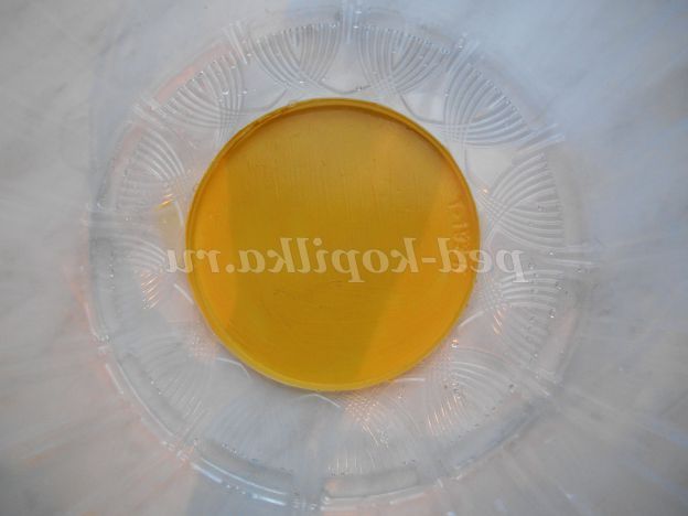 Почнемо нашу роботу з розмальовування внутрішньої частини упаковки від торта. Середину ми розфарбували жовтим кольором.