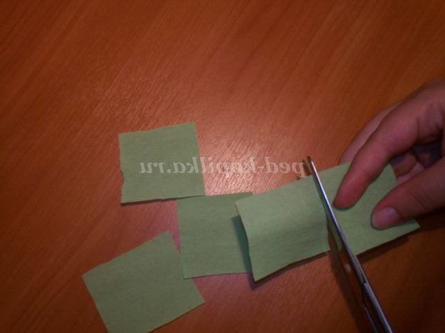 Далі робимо пелюстки із зеленого паперу. Нарізаємо смужки на всю довжину і шириною 5 см.