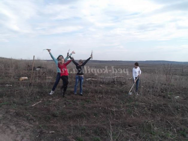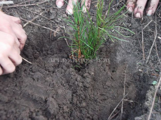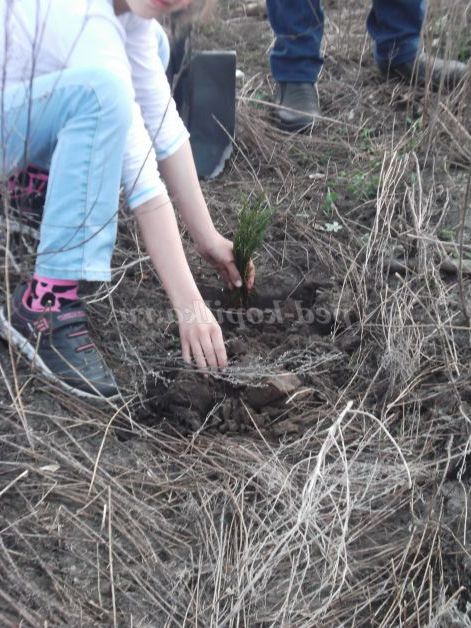 Ми розчищали борозенки, і розсаджували росточок за росточком сосонки.
