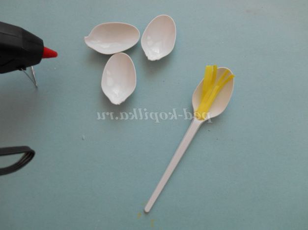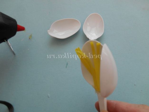 Візьміть ложку і з допомогою гарячого клею приклейте тичинки.