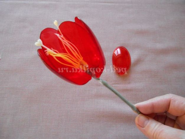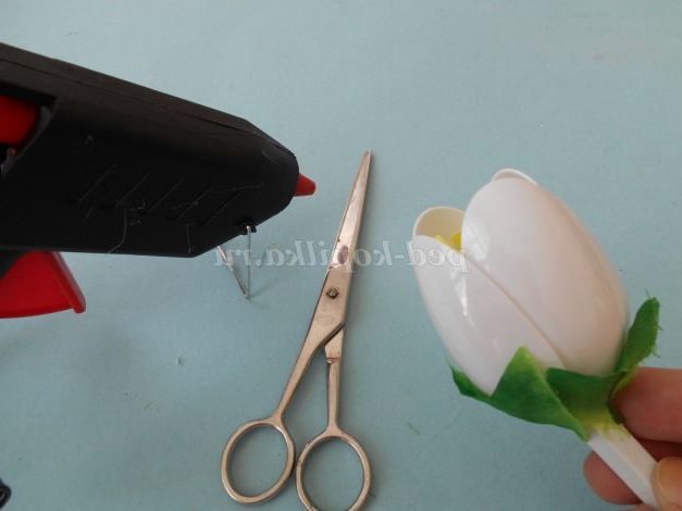 За допомогою гарячого клею до стебла тюльпана приклейте тичинки.