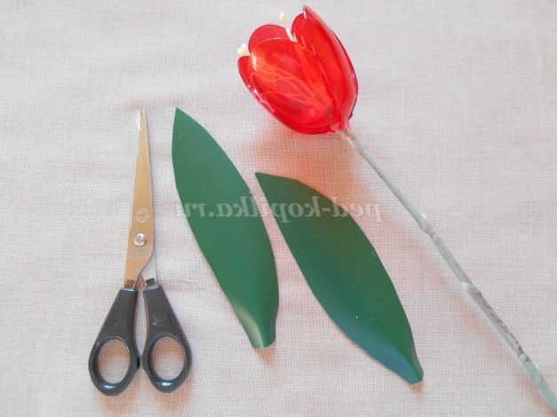 Виріжте з пластикової зеленої пляшечки (на ваш розсуд) два листки. Варіантів багато.