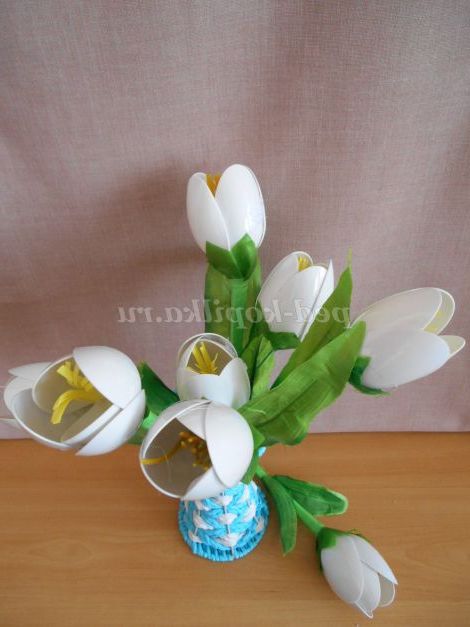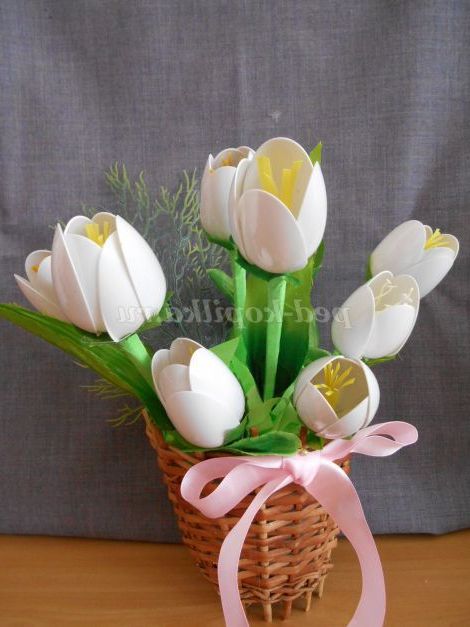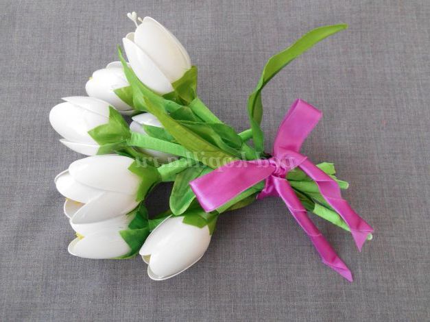 Білі тюльпани дарує нам весна. Виготовлення квітів з пластикових ложок своїми руками. Майстер - клас з покроковими фото