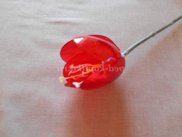 Використовуючи таку технологію, зробіть інші тюльпани. Якщо ви хочете, щоб у тюльпанів були довгі стебла, приклейте відрізані ручки. Наростіть стебло.