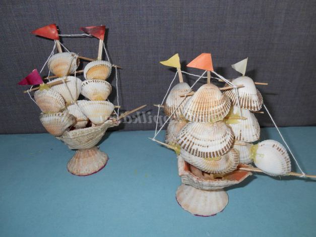 Формуємо вітрило з морських гребінців. Вони дуже витончені і нагадують розкритий віяло. Вітрильник майже готовий.