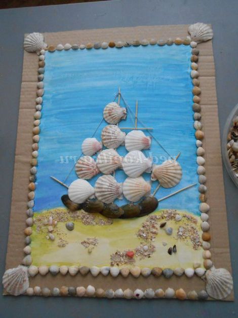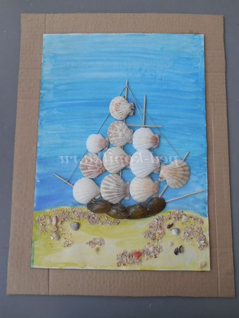 Панно "Вітрильник моєї мрії" з черепашок своїми руками. Майстер-клас з покроковими фото