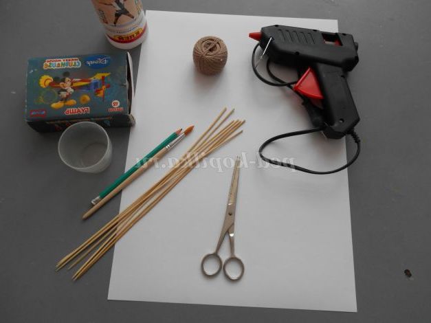 Приклеюємо дерев'яні шпажки. Це щогла. Натягуємо на них нитки.