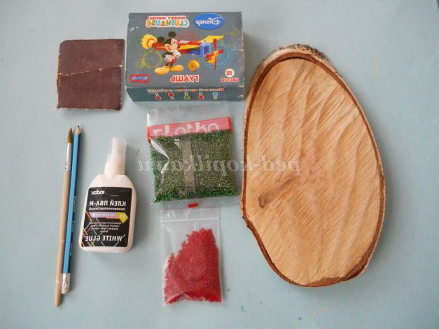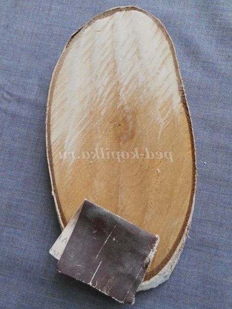 Візьміть зріз дерева. Мені заготовки зробив зять. Вам можуть зробити в шкільній майстерні старшокласники. За допомогою наждачного паперу обробіть поверхню зрізу. Він повинен бути рівним і гладким.