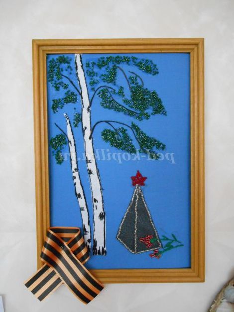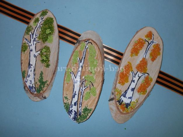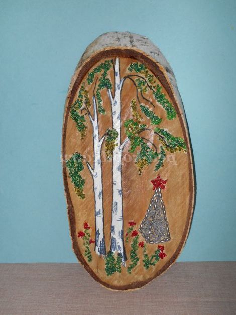 Панно на зрізі дерева з бісеру. Подарунок ветерану до Дня Перемоги своїми руками. Майстер-клас з покроковими фото