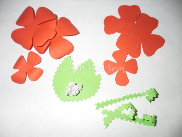 5. Виходить пишний квітка. У центр приклеюємо серцевиною трояндочки.
