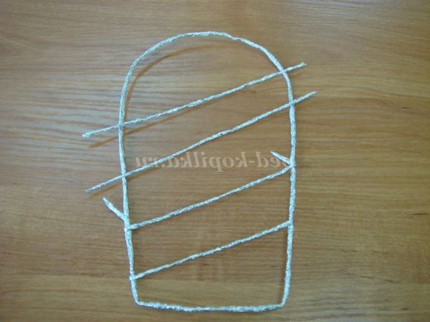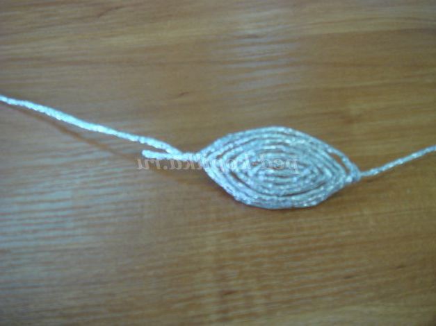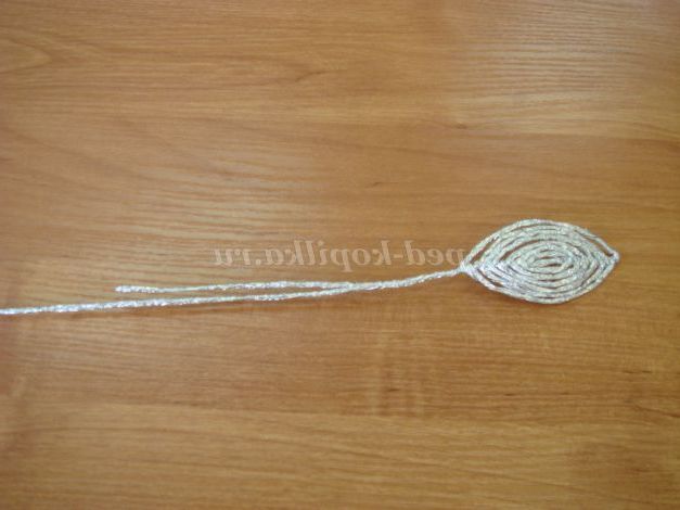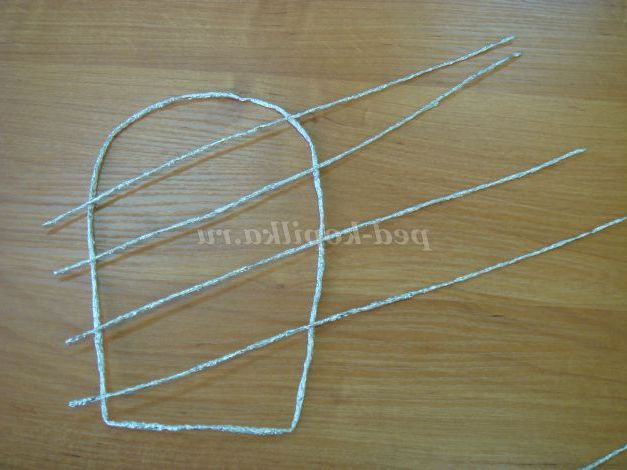 Скручуємо кінці і викладаємо основу: внизу 8 см. а верх трохи розширюємо і заокруглюємо. Для прикраси виготовляємо звичайні зволікання.