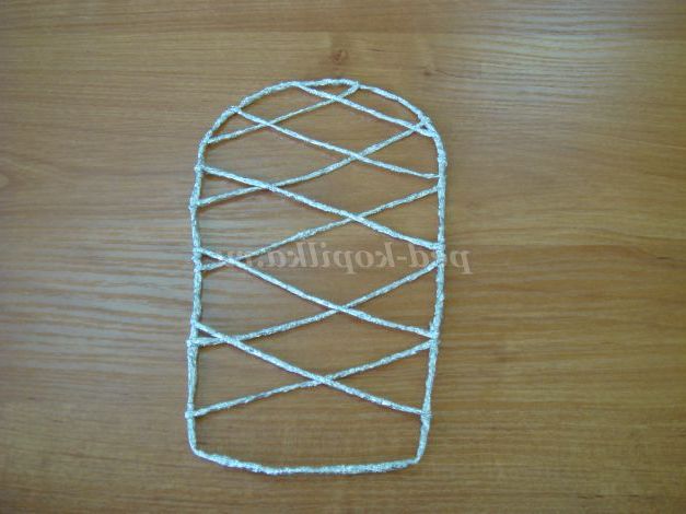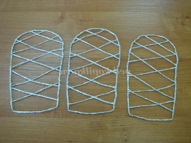 Для виготовлення основи (1) треба скрутити зволікання щільніше ніж обычные.Для цього фольгу розрізаємо шириною не 3см. а 6см. і скручуємо проволочки.Всего знадобиться 6 штук.