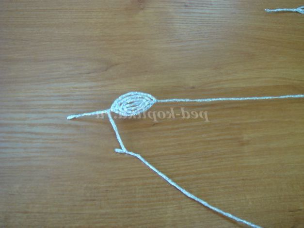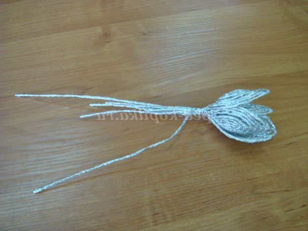 Одержаний довгий кінець опускаємо вздовж пелюстки і з'єднуємо з хвостиком перекручуючи їх.