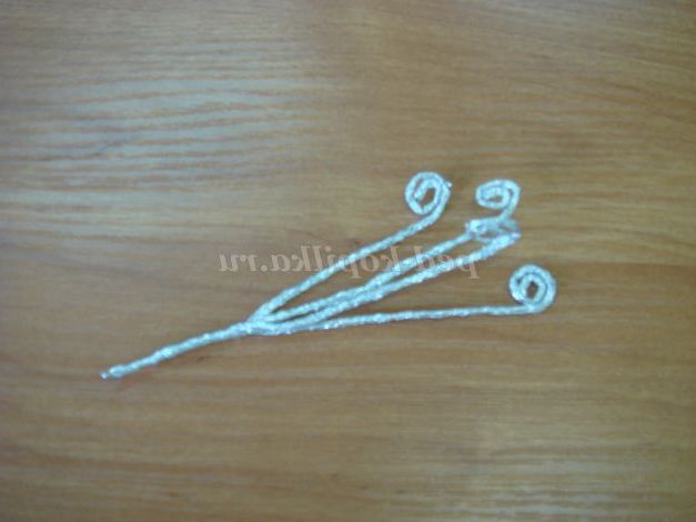 Спочатку виготовляємо тичинки: 2 зволікання розрізаємо навпіл і на одному кінці кожної частини закручуємо завиток.
