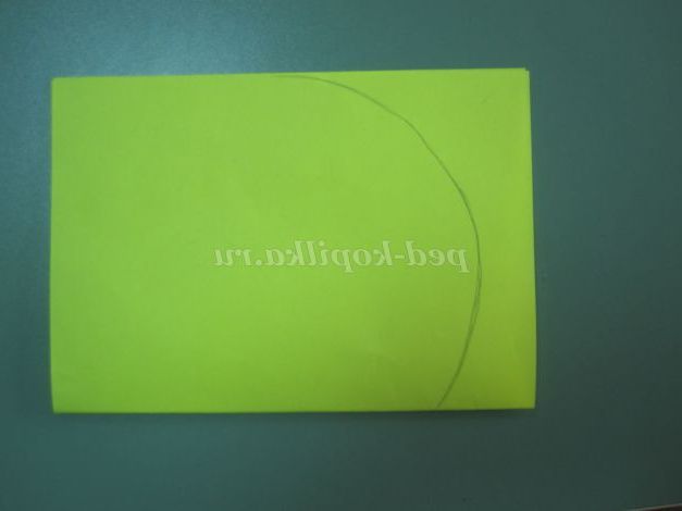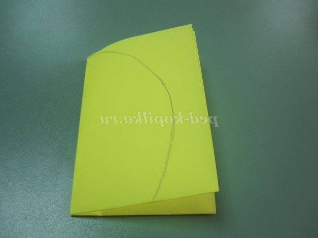 3. Кладемо лист зігнутою стороною вниз і малюємо з одного боку контур бічної частини сумочки.