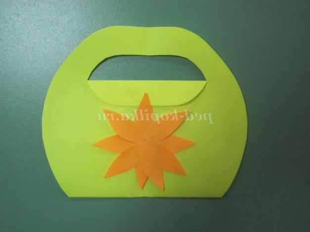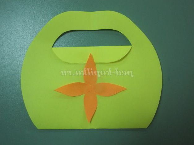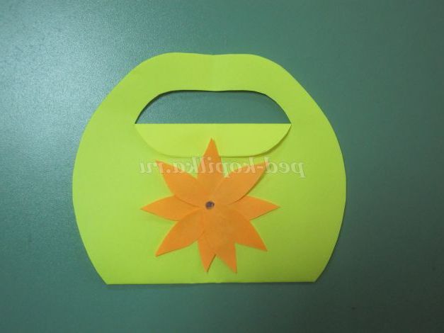 12. Наклеюємо в середину сумочки 4 пелюстки, краї не приклеюємо.