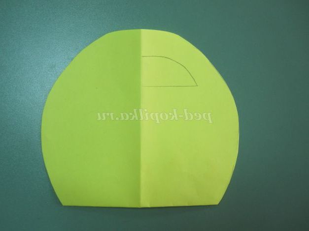 6. Малюємо половину ручки сумочки з одного боку і вирізаємо по лінії верх у ручки, а по нижній лінії складаємо.