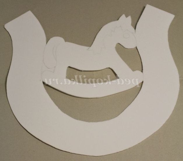 5. Розділити деталі паперової заготовки на конячку і підкову. По черзі накладаючи шаблони коні і підкови на частини заготовки, зафарбовуємо їх у відповідні кольори.