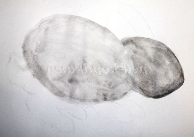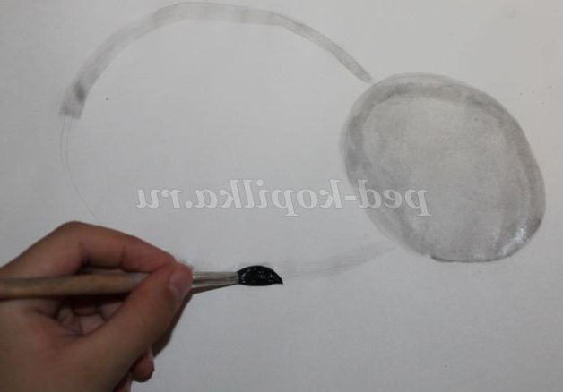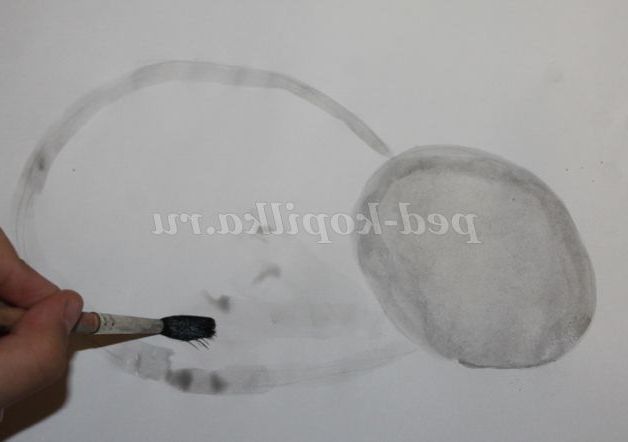 5. Сірим кольором, додаючи воду, пензликом малюємо силует голови у формі овалу