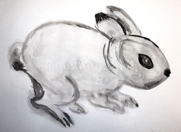 13. Поступово, додаючи поперемінно чорний і білий кольори, оформляємо спинку, мордочку, вуха, ніжки, хвостик