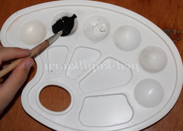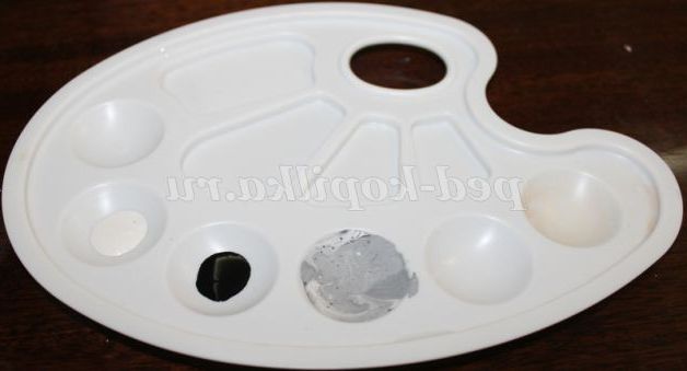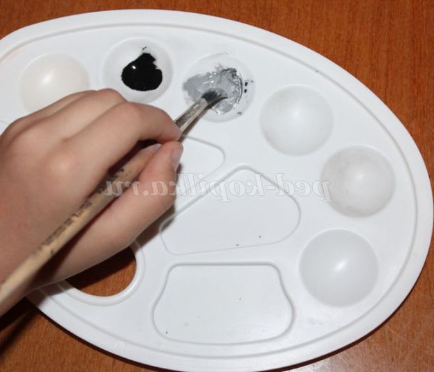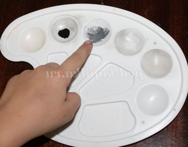 2. Спочатку в палітру додаємо чорну і білу гуаш