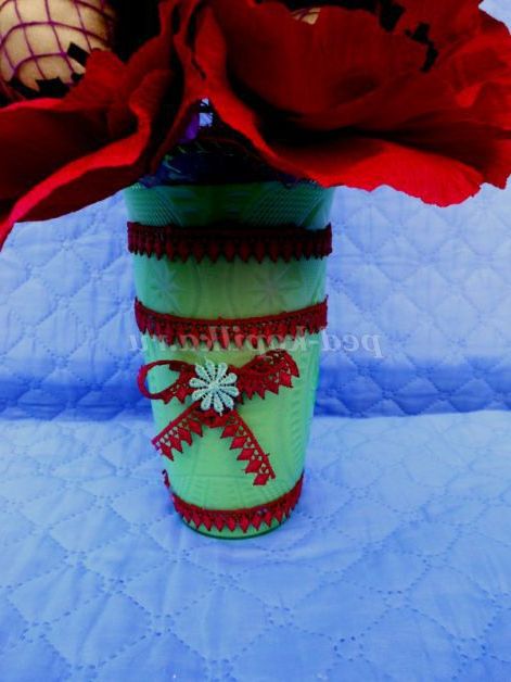 І чекаємо, коли добре висохне. Коли все добре підсохне починаємо за своїм бажанням оформляти нашу композицію, верхні гілочки, квіти і бутони, можна кріпити зеленим двостороннім скотчем. Якщо ви бачите, що ваша вазочка виглядає нудно її можна освіжити, я наклеїла за допомогою терма пістолета ажурні мережива, а всередині горщика поклала рожеву сизаль, грубе волокно, але якщо його побризкати водою, стане м'яким і податливим. Ось тепер все можна просто помилуватися своєю роботою. Не могла визначиться з фоном покажу різні варіанти