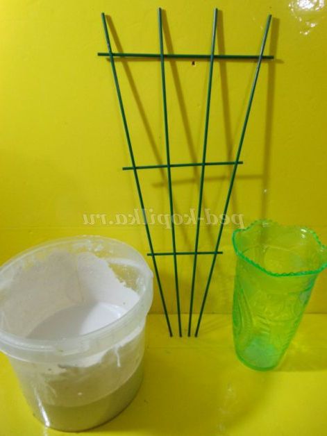 Беремо вазочку, розмішуємо гіпс і заливаємо, вставляємо рамку