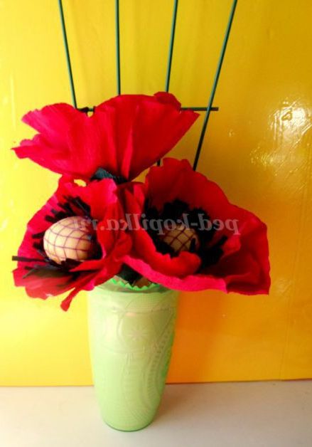Маки з крепованого паперу. Майстер-клас з покроковим фото