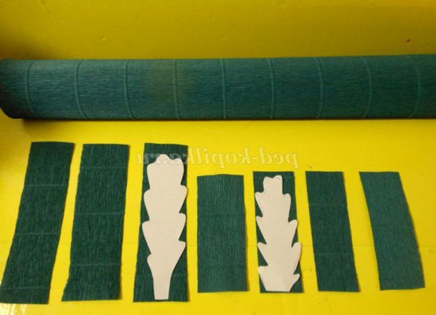 Для цього нарізаємо прямокутники розміром 11х3 і 8х3, прикладаємо шаблон листочка