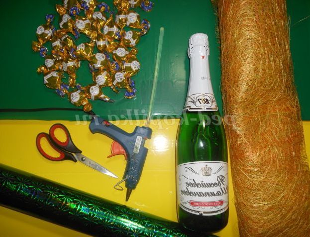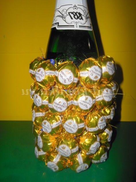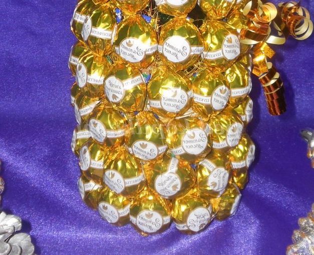Упаковка для шампанського з цукерок у вигляді ананаса. Покрокові фото і опис