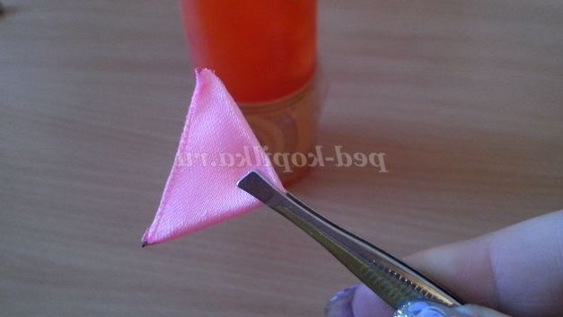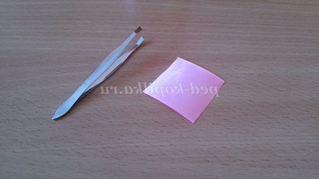 5)Беремо квадрат зі світло-рожевої стрічки.