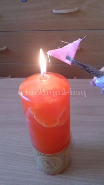 4)Запалюємо свічку. Вона нам знадобиться для споювання кутів пелюсток.