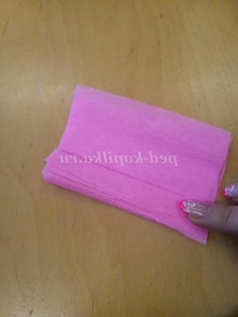 1) З креповой паперу вирізаємо квадрат,розміром приблизно 15 х 15 сантиметрів. Складаємо квадрат таким чином, щоб у нас вийшла "серветка".