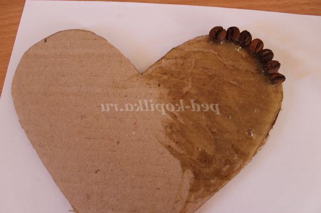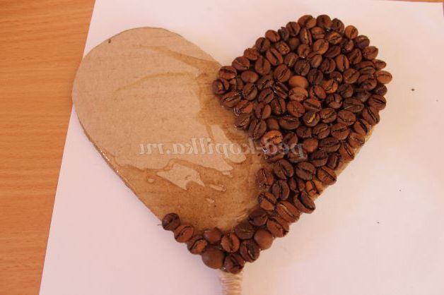 6)Промазуємо сердечко клеєм і викладаємо зерна по всій формі.