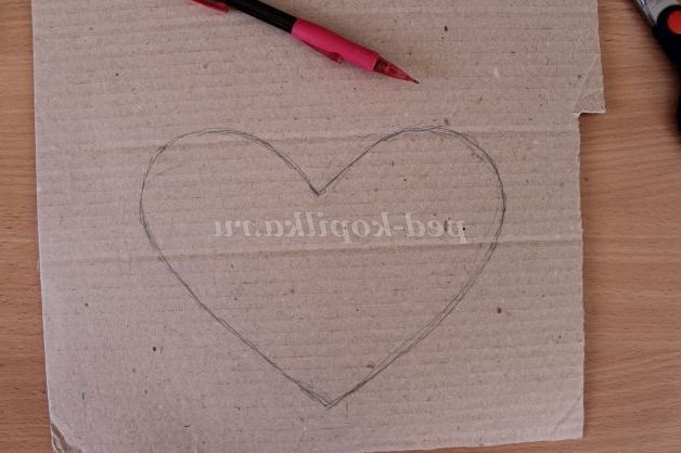 1)Починаємо з виготовлення крони. Беремо картон і малюємо серце,потрібного нам розміру.