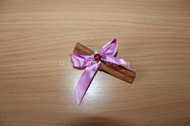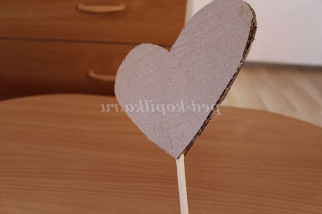 3)Беремо палички для суші. Поділяємо. Одну палички розміщуємо між двома сердечками і склеюємо.