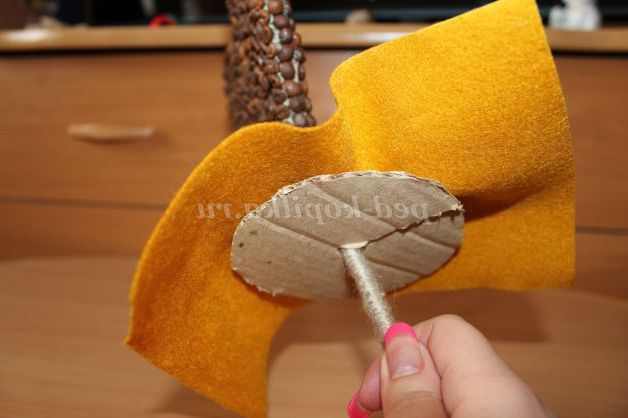 15)Починаємо збирати наше дерево. Протягуємо крону в фетр.