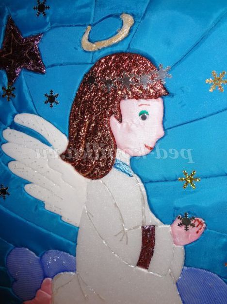 Перламутровим гелем малюємо складки на одязі і пір'ячко на крильцях. Ангел готовий!